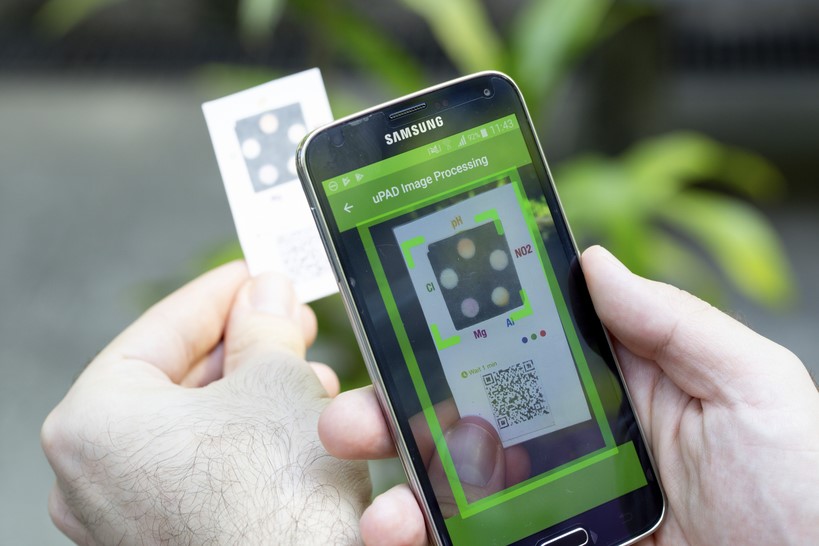 Os resultados desses testes colorimétricos são exibidos por meio de um conjunto de círculos no verso do cartão, com a cor de cada um deles representando a quantidade de um determinado elemento químico na amostra. A partir daí, o produtor só precisa utilizar seu smartphone com um aplicativo dedicado para fotografar o AgroPad e receber de forma imediata o resultado do teste químico.